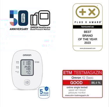 O OMRON X2 Basic é mais do que um simples tensiómetro digital de braço. Ele é um parceiro de saúde, que ajuda você a acompanhar sua pressão arterial e seu pulso de forma prática, rápida e confiável.